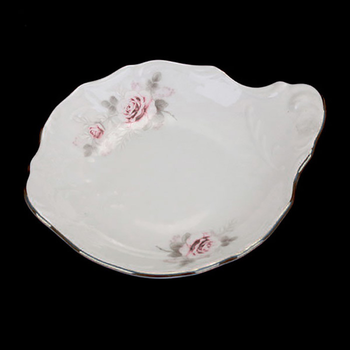 Отдельные предметы сервировкиРозетки, мармеладницы → Розетка с ручкой «Бледные розы, отводка платина» (форма "Bernadotte")