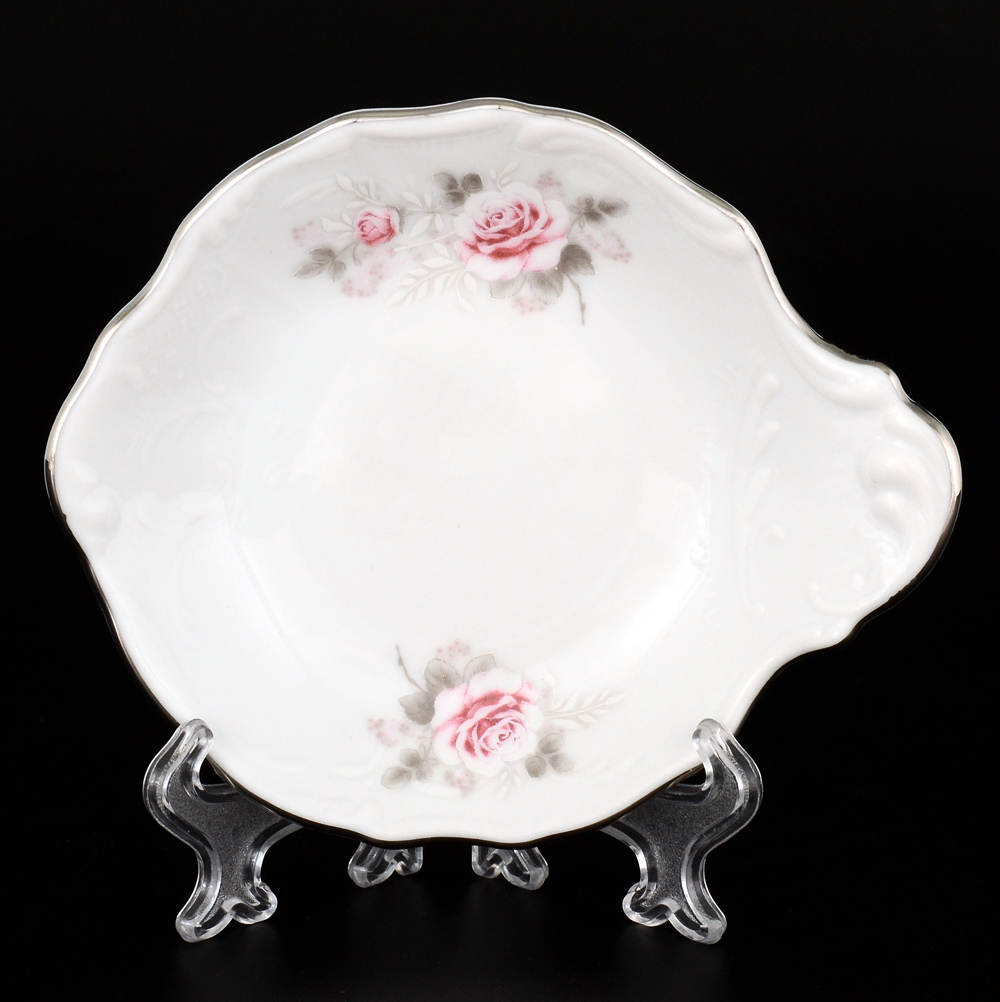 Отдельные предметы сервировкиРозетки, мармеладницы → Набор розеток с ручкой «Серая роза, отводка платина» (6 шт.)