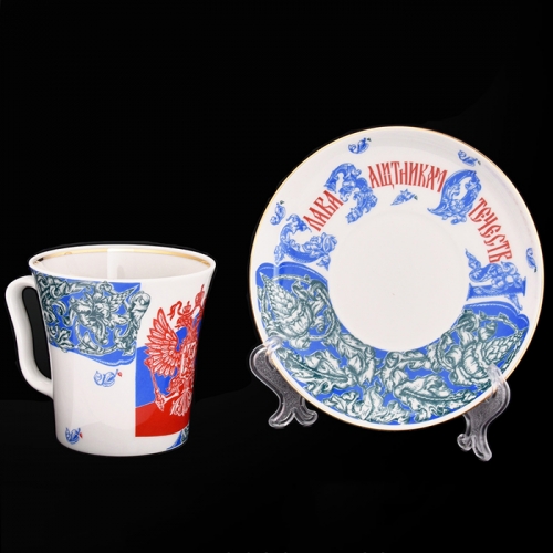 Бокал с блюдцем, рис. " Слава Защитникам Отечества " 360 мл (форма "Ленинградский")